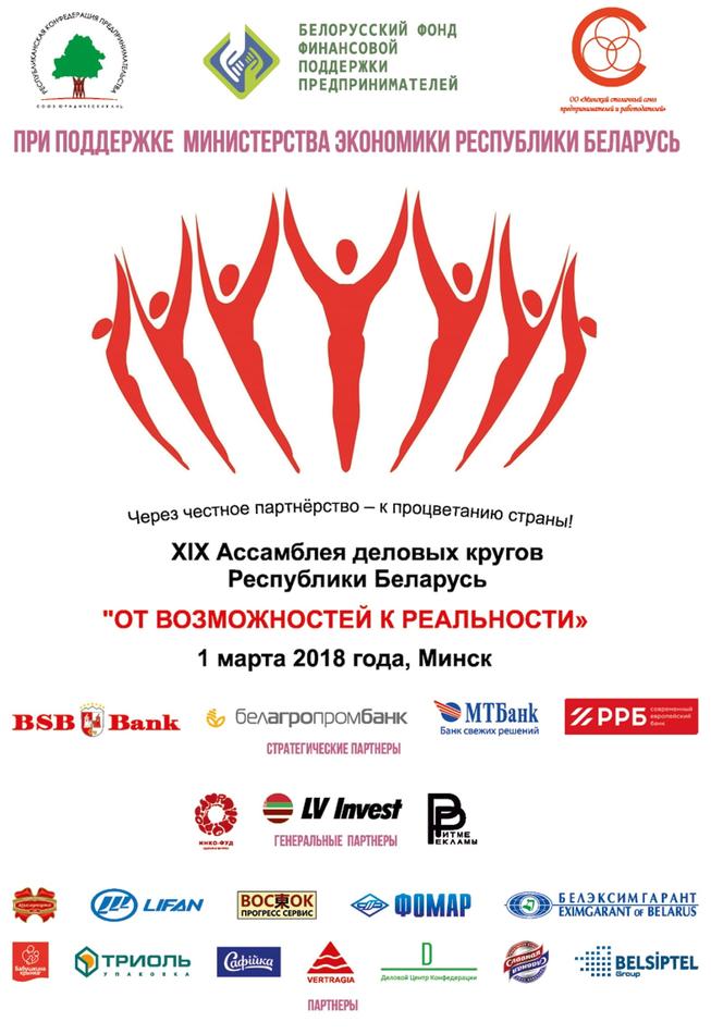 Главным мероприятием Недели стала XIX Ассамблея деловых кругов Республики Беларусь, которая прошла 1 марта в большом зале Национальной библиотеки Беларуси.